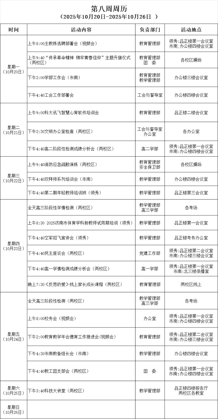 第八周周历