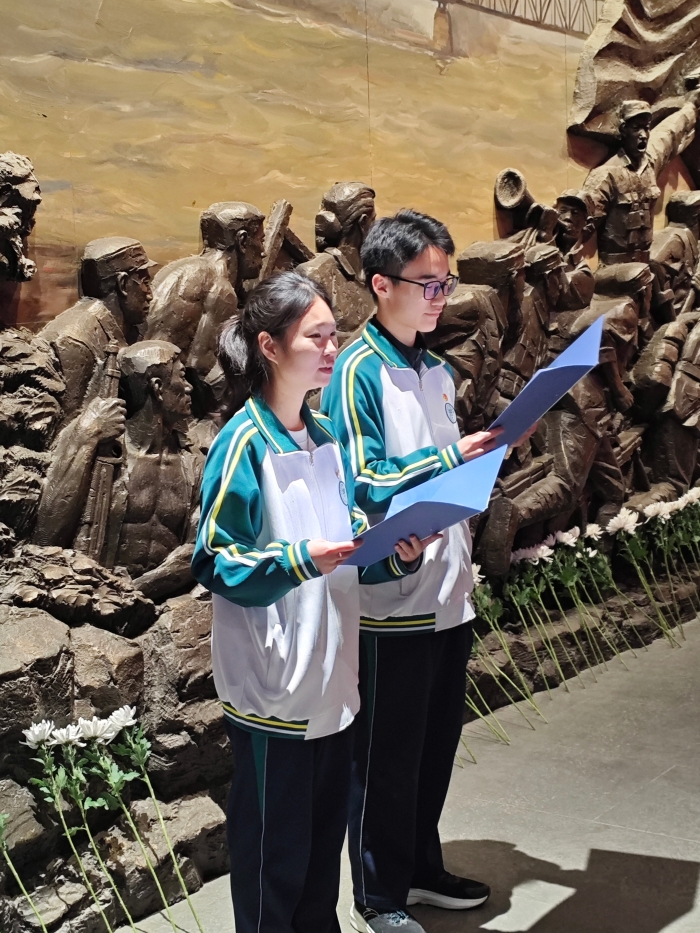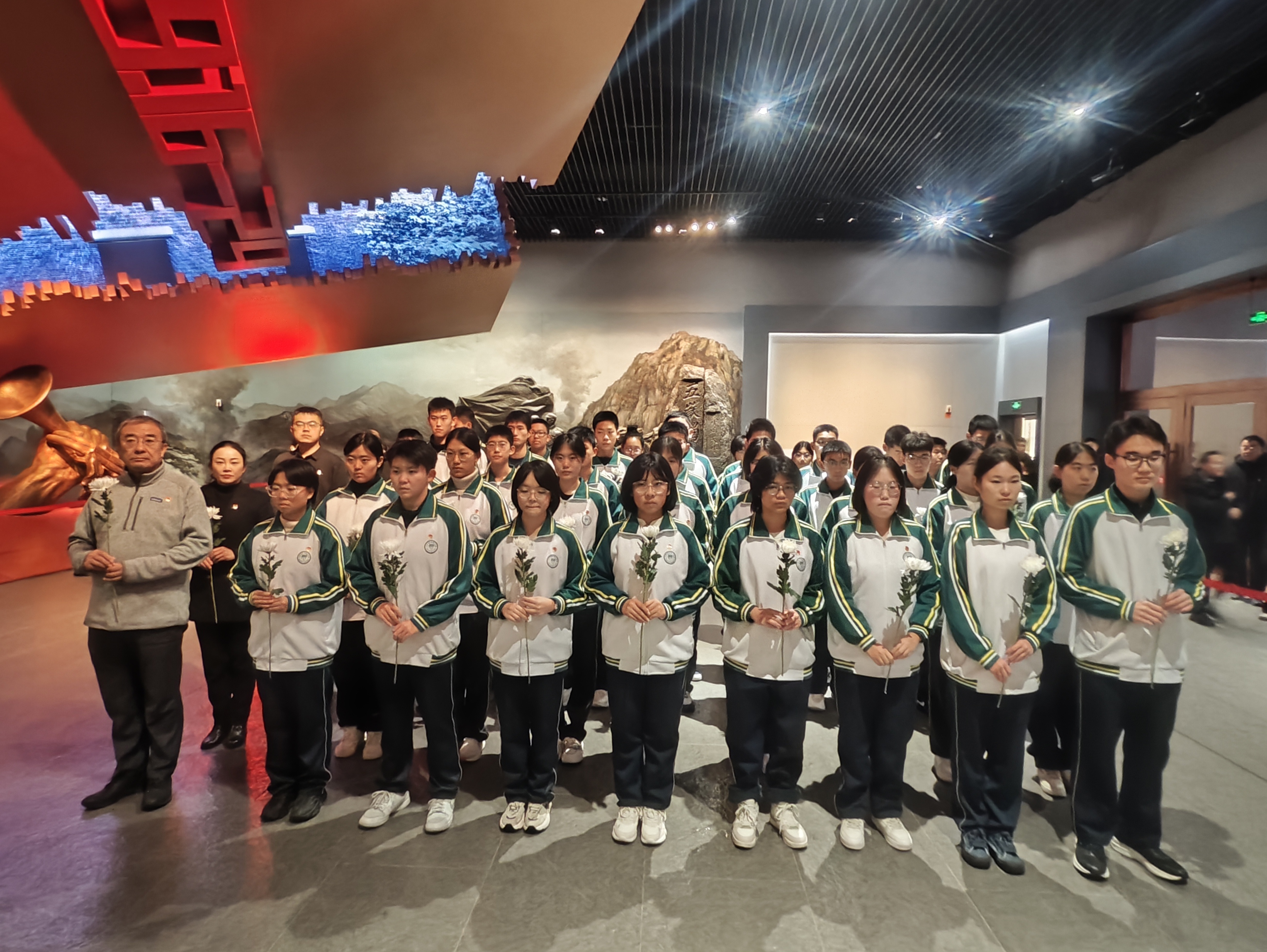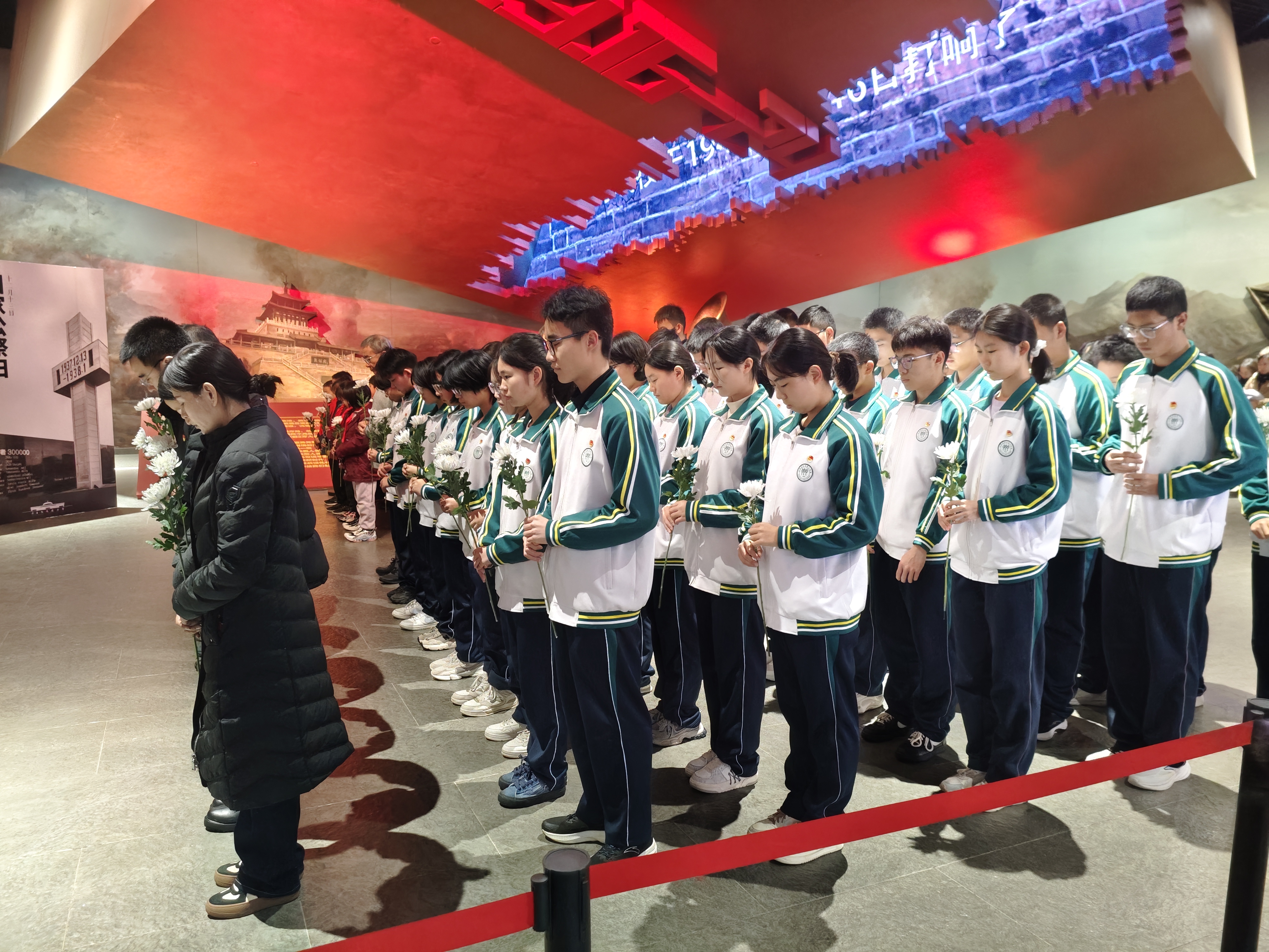 今天(12月13日),是第12个南京大屠杀死难者国家公祭日。为引导青年学子铭记民族伤痛、缅怀革命先烈,济南三中组织师生代表走进济南战役纪念馆,以一场庄重肃穆的悼念活动,筑牢家国情怀,凝聚奋进力量。 上午十时,纪念馆序厅内灯光低垂,气氛庄严肃穆。师生代表静静肃立,神情凝重,为在南京大屠杀中遇难的无辜同胞和所有为民族独立、人民解放事业献出生命的先烈默哀致敬。默哀毕,同学们手持白菊,依次缓步上前,将鲜花轻轻放在纪念台前,鞠躬致敬。洁白的菊花在冬日里静静绽放,承载着新一代青年对逝者的深切追思与对历史的永恒铭记。 仪式现场,学生代表集体诵读《和平宣言》,一字一句穿透时空,既是对苦难历史的回应,更是对和平未来的宣誓,道出了三中学子不忘历史、勇担使命的青春心声。 仪式结束后,在讲解员的带领下,师生们参观了济南战役纪念馆,透过珍贵的文物史料、震撼的全景画和生动的历史复原,深刻感悟革命先辈不畏牺牲、矢志奋斗的崇高精神。 历史川流不息,精神代代相传,此次公祭日悼念活动,让红色基因融入青春血脉,让家国情怀成为成长底色。未来,济南三中将持续引导广大学子把对先烈的缅怀、对历史的敬畏,转化为勤学笃行的动力、强国有我的担当,让青春在实践中绽放绚丽之花。 (供稿:团委 初审:王友金 复审:马楠楠 终身:姜明 编辑:张迪 张乐 核发:张迪) |