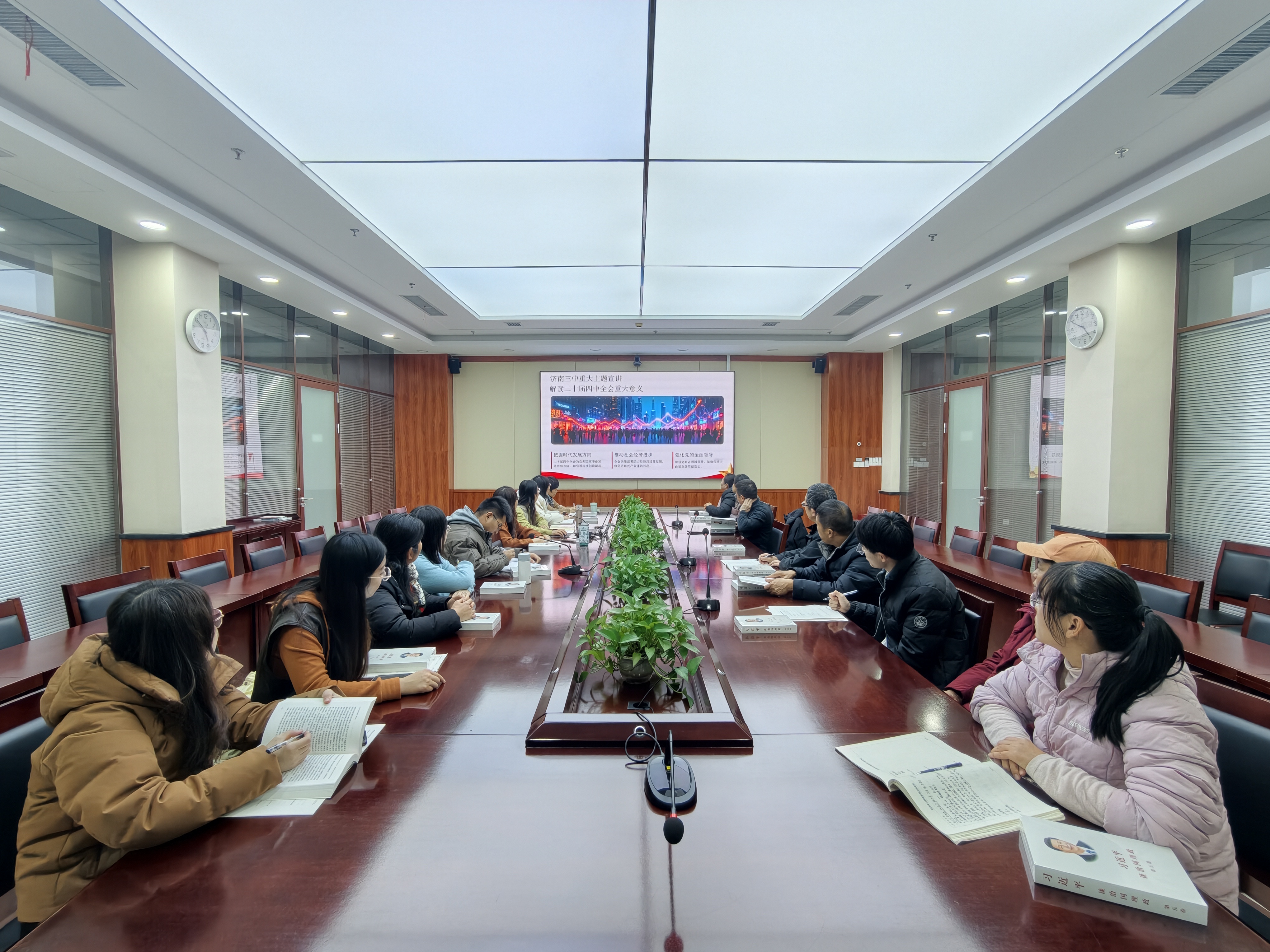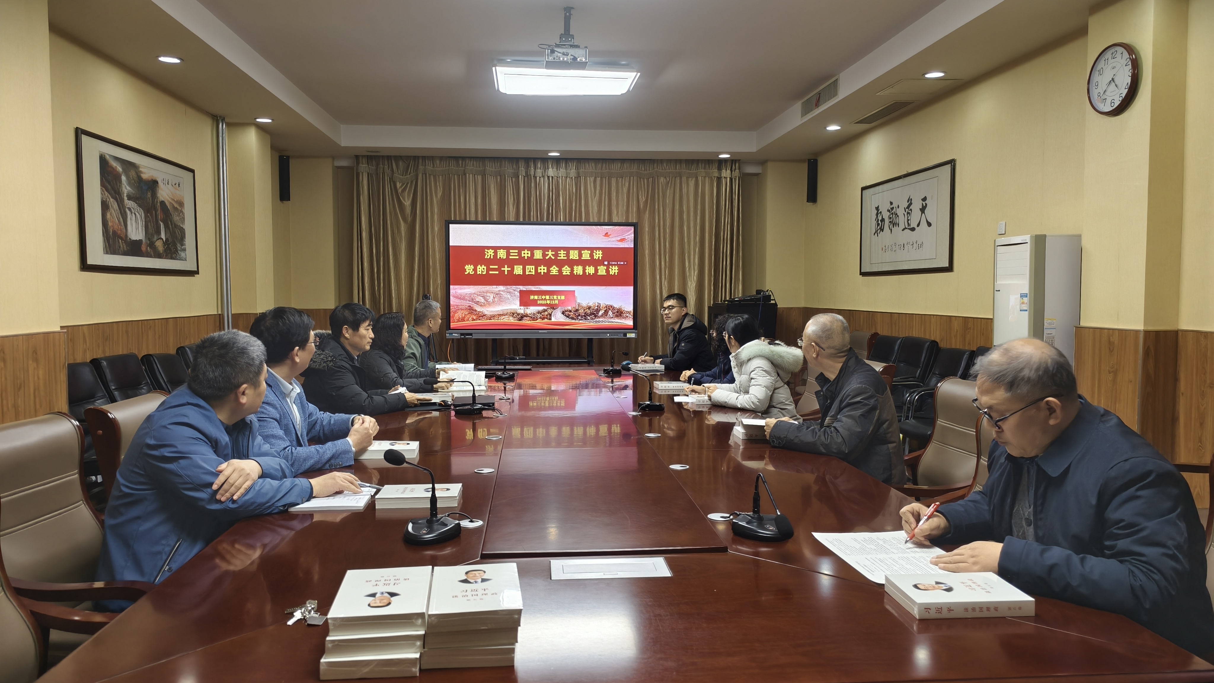 为深入学习贯彻党的二十届四中全会精神,切实把全校教职工的思想和行动统一到全会精神上来,12月6日至11日,济南三中党委统筹部署,校党委及各党支部分层分类举办学习贯彻党的二十届四中全会精神宣讲报告会,推动全会精神在校园落地生根。 12月6日,济南三中全体教职工大会如期举行,学校党委书记姜明以全会精神为核心作专题宣讲报告。报告中,姜明围绕“十五五”时期的重要战略地位、“十五五”规划建议的起草考量、核心内容框架以及其中蕴含的民生关怀等四个维度,结合济南三中在推进教育高质量发展中的实践探索、办学特色打造及重点工作推进情况,对全会精神进行了系统解读和深度阐释。整场报告主题鲜明、脉络清晰,既有理论层面的精准解读,又有结合教育教学实际的实践思考,为全校教职工全面把握全会精神实质、精准落实工作要求提供了有力指导。 为确保宣讲覆盖全面、入脑入心,12月11日,学校各党支部相继召开党员大会,由学校党委委员在各支部开展专题宣讲。为提升宣讲质量,学校党委提前组织集体备课,反复打磨宣讲提纲,对内容的准确性、表述的通俗性及与支部工作的结合度进行严格审核,确保宣讲内容既符合上级要求,又贴近党员思想工作实际。 此次系列宣讲活动的开展,有效深化了全校教职工对党的二十届四中全会精神的理解与认同。参会人员纷纷表示,将以此次学习为契机,把学习宣传贯彻全会精神作为当前和今后一个时期的重大政治任务,切实把学习成果转化为履职尽责的动力、教书育人的实效,以扎实进取的工作态度、求真务实的工作作风,奋力书写济南三中教育事业发展的崭新篇章。 (撰稿:李蕊 摄影:各支部 部门审核:领秀党建工作部 编辑:张迪 张乐 审阅:姜明) |