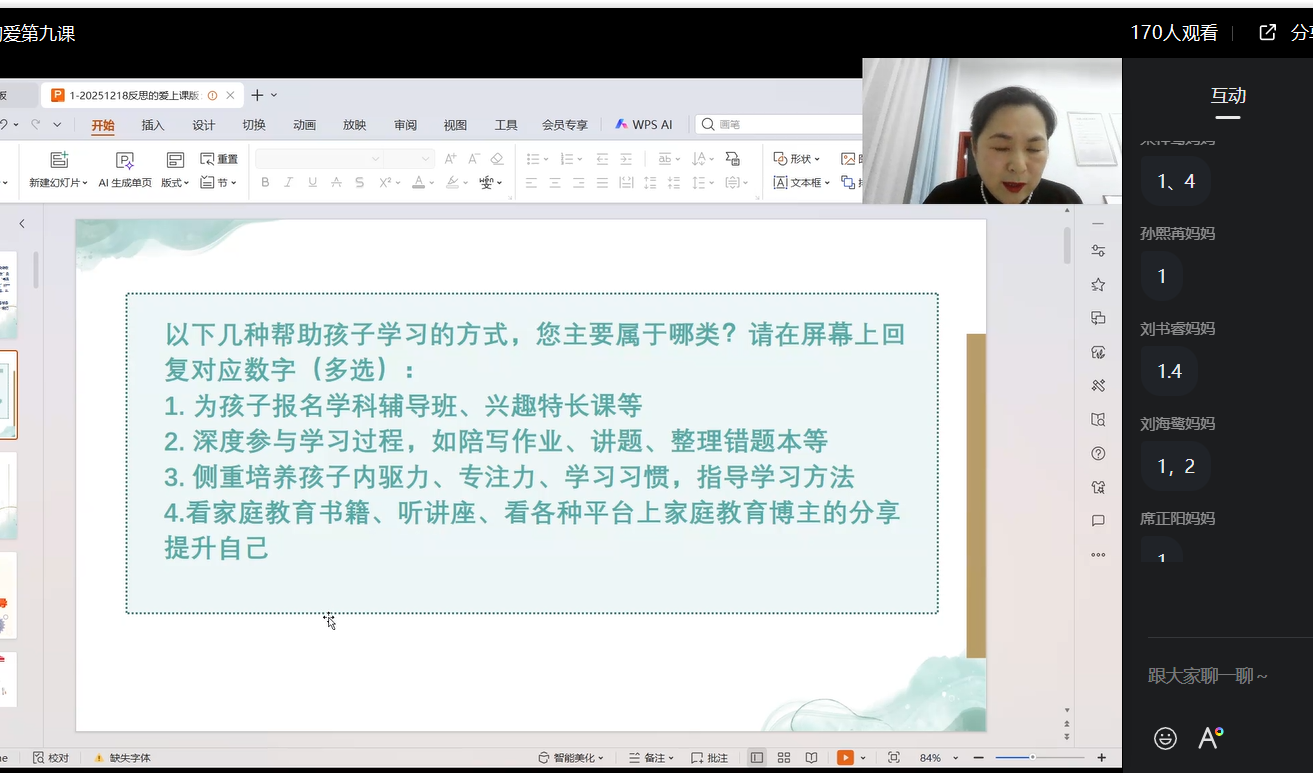 12月18日晚,济南三中汇爱家长学校第九期线上课堂如期开播,温暖联结每一位求知若渴的家长。本期课堂以“打造学霸大脑:早年养育反思与策略”十六字为主题,精准戳中家庭教育的核心痛点——为什么补课投入越多、成绩越疲软?这场干货满满的分享,为困惑中的家长拨开了盲目教育的迷雾。 学校党建工作部主任、家庭教育指导师彭保华以一张清晰的“自主学习系统模型”图为引,深入浅出地解析了童年养育对孩子未来学习能力塑造的关键影响,接着,从大脑运行规律出发,三步解锁学习的奥秘: 第一步,让知识真正“入脑”。彭保华通过生动演示“信息—突触—长时记忆”的内在路径,帮家长瞬间厘清关键认知:刷题并非知识“存盘”的有效方式,唯有搭建知识模型、保障优质睡眠,才是激活记忆留存的核心“保存键”。 第二步,让记忆实现“随取”。她精准给出“0-1-2-4-7-15-30”的间隔复习黄金节拍,并搭配“闭眼回放知识点”“向他人讲解内容”两大实用策略,双重助力学生筑牢记忆根基,让所学知识牢牢扎根,不易遗忘。 第三步,让反思“高效”。课程创新性引入“学习全维度分析清单”,更将传统的“错题本”升级为兼具反思与成长价值的“大脑日志”,引导孩子从错题中提炼规律,实现学习能力的迭代升级。 针对家长们普遍关切的“孩子学习时间不足”“方法落地无从下手”等实际难题,彭保华逐一给出具体可行的解决方案,让科学方法真正具备落地性。 学业问题往往是亲子关系紧张的导火索。不少家长重视教育却缺乏科学指引,极易陷入“盲目补课”的误区。“补课补的是‘外功’,脑科学赋能的才是‘内功’。”彭保华的观点直击要害。她透露,学校党委牵头成立的“育见心安”项目组,已系统研发6节“脑科学+学习力”系列课程,精准对应“一听就会、一做就废”“记忆漏斗”“注意力漂移”等六大学习高频痛点。 脑科学并非给教育额外“加料”,而是为盲目前行的养育之路装上“精准导航”。学校将面向学生、教师、家长开展三层并行培训,让每一份教育都精准对接孩子大脑的生长节律,让科学养育的阳光照亮每一位学子的成长之路。 (撰稿:彭保华 摄影:彭保华 部门审核:领秀党建工作部 编辑:颜红 张乐 审阅:张迪 )
