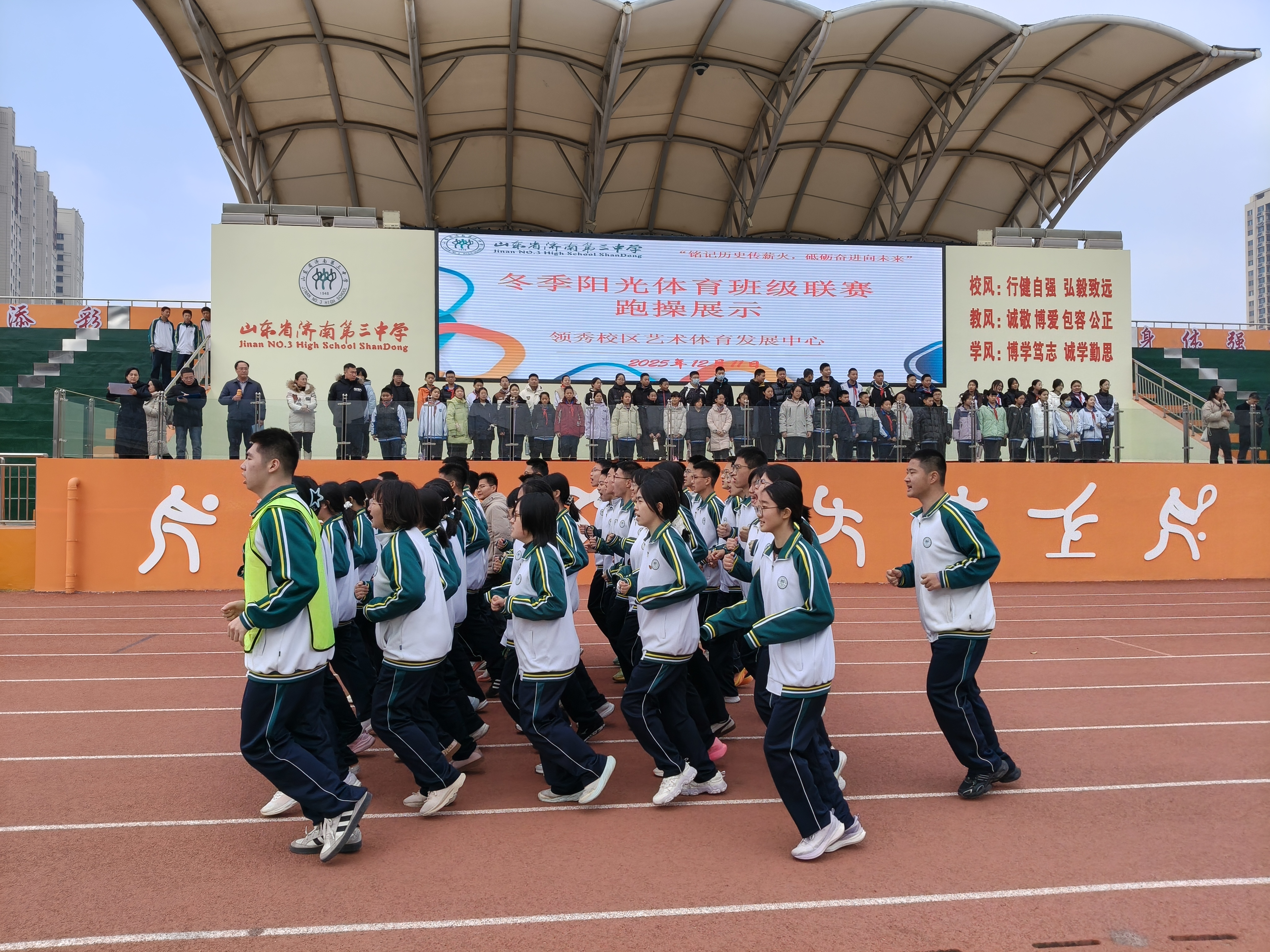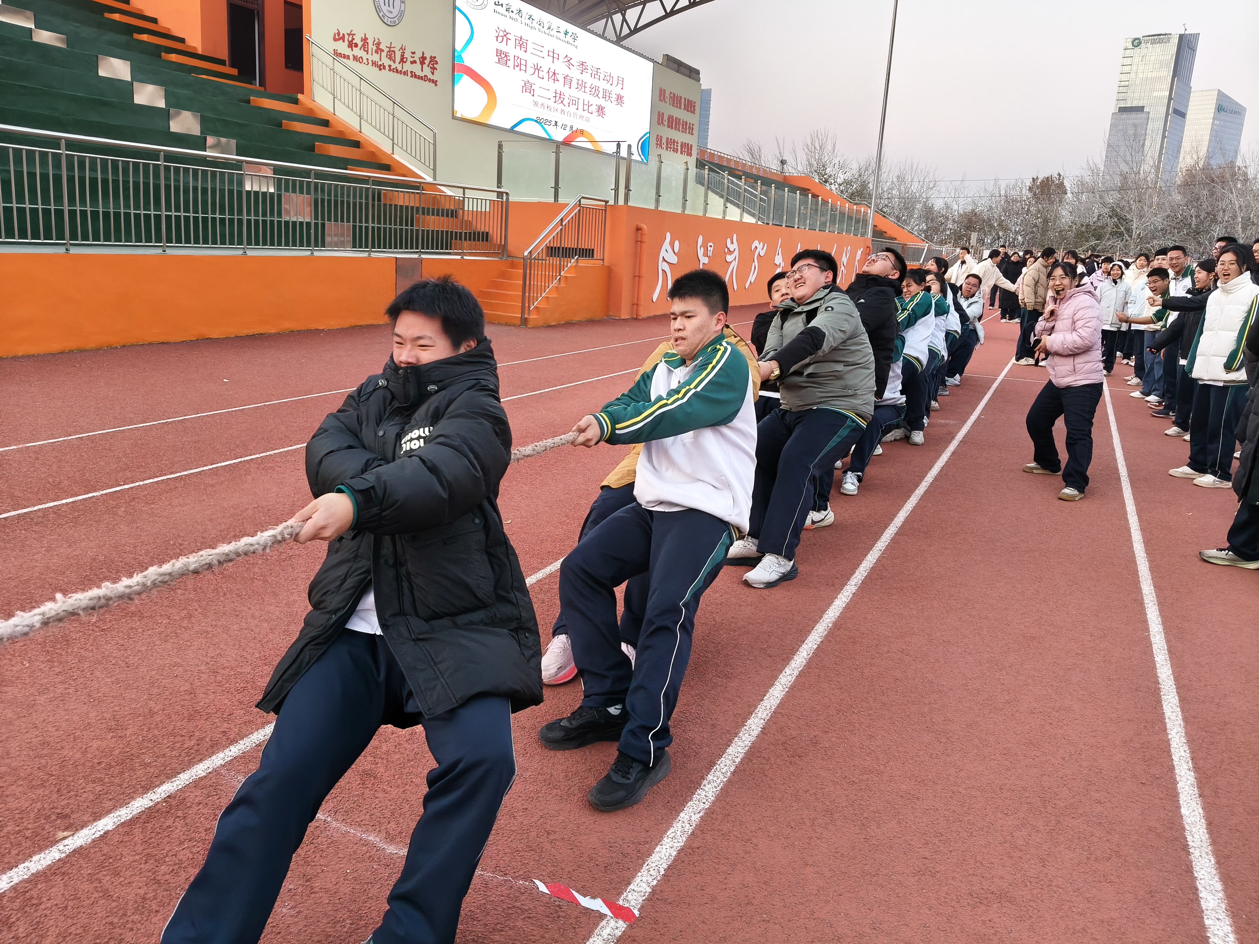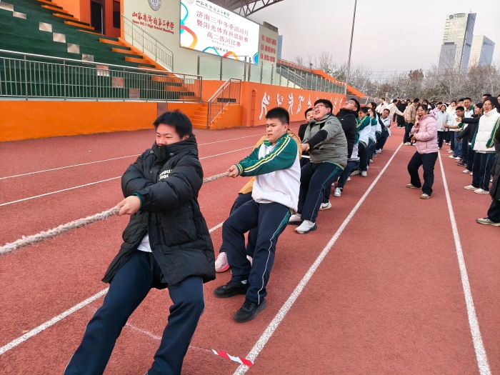 冬日暖阳轻拂校园,赛场上,青春的活力正肆意流淌。传球时的灵动身影、冲刺时的追风脚步、欢呼时的灿烂笑颜……寒意被蓬勃朝气驱散,每一个鲜活瞬间,都是济南三中2025年冬季阳光体育活动月最动人的注脚,也勾勒出活力校园的温暖模样! 践行“五育并举、健康第一、以体健心”的育人理念,济南三中以“阳光体育”为纽带,三个年级全体学子以班级为单位奔赴这场冬日运动之约。 体质达标赛的跑道上,同学们把耐力藏进每一步跨越,把速度融进每一次冲刺;三人制篮球赛,攻防转换、急停跳投,每一个动作都利落干脆,紧张的节奏让全场热血沸腾;拔河赛场更是力量与意志的对决,绳缆紧绷处,一张张憋红的小脸写满不服输的韧劲;跳大绳的健儿们则化身灵动飞燕,长绳翻飞间,身影轻盈起落,和着计数声奏出动听的校园乐章…… 汗水浇灌成长,协作凝聚力量,每一份拼搏都闪耀着青春的光芒,每一次呐喊都诠释着少年的热血。愿每一位三中学子都能在阳光与运动中淬炼品格,逐光而行、全面发展,书写属于青春与时代的精彩篇章! (供稿:领秀教育管理部 初审:朱宁宁 复审:姬强 终审:姜明 编辑:颜红 张乐 核发:张迪)