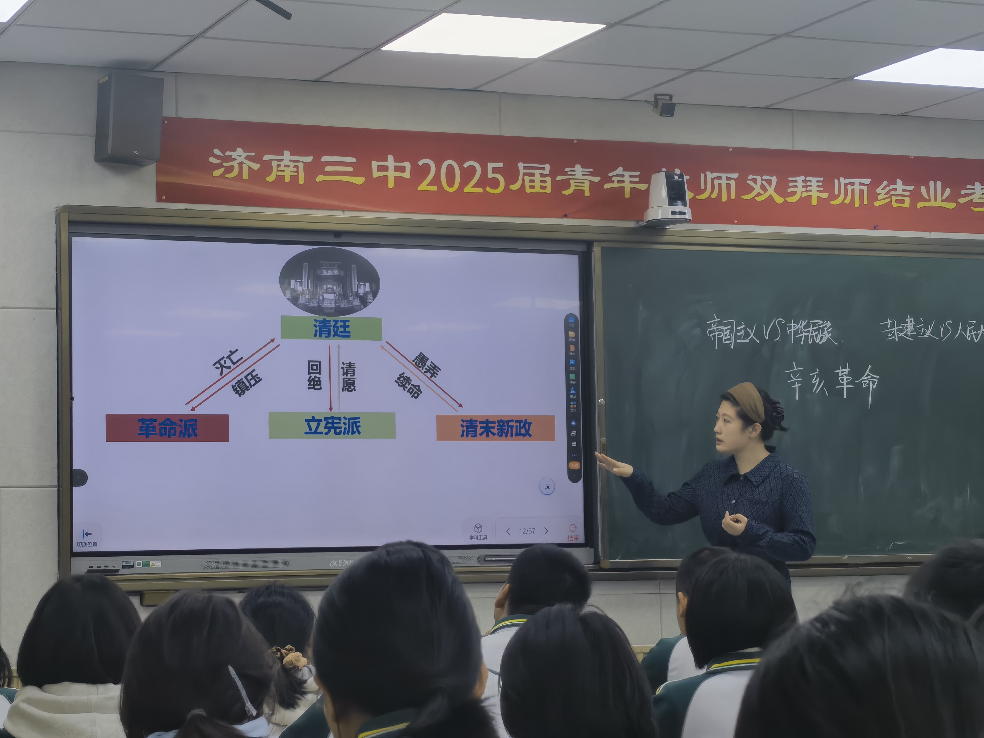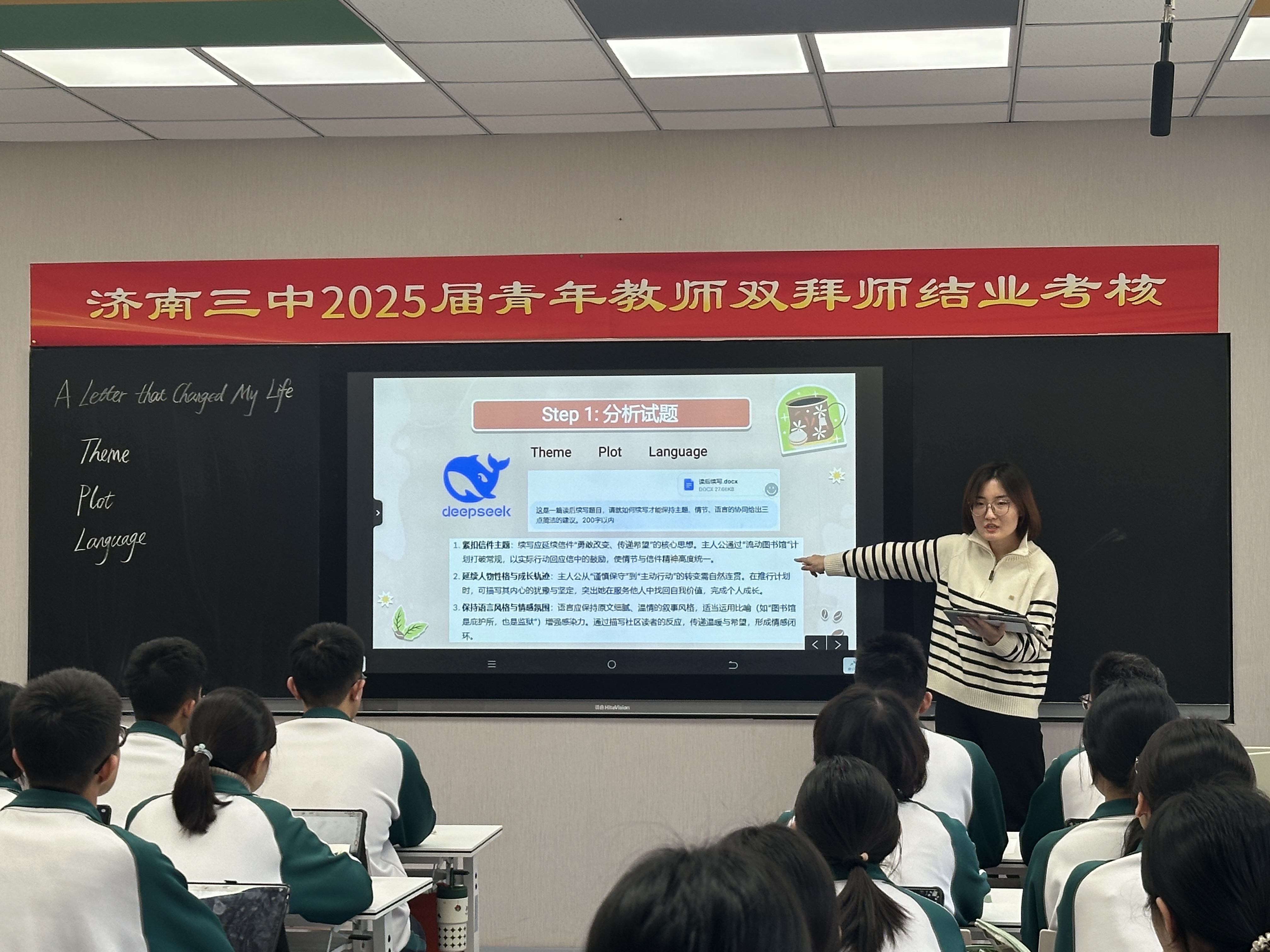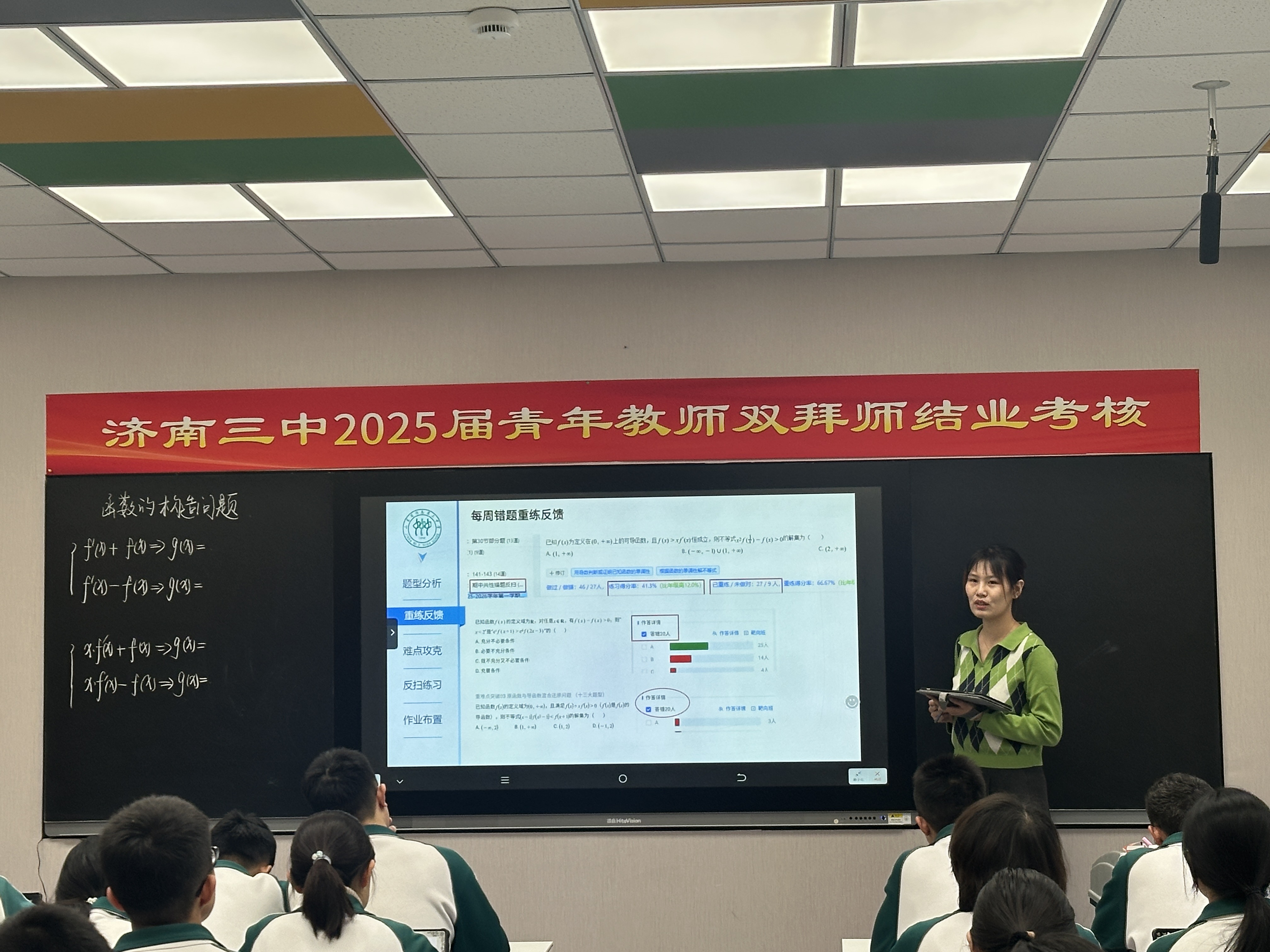 济南三中始终将青年教师培养视作学校发展的“源头活水”,以“为新师铺路、为教育筑基”为初心,精心搭建成长平台。近日,2022年新入职教师双拜师结业考核课如期而至,8位青年教师携朝气、怀匠心,在三尺讲台绽放别样光彩,用一堂堂生动课例,交出了“拜师学艺”的成长答卷。 数学课堂藏“智慧密码”: 金梦老师一节《导数中函数的构造问题》,没有枯燥的公式堆砌,而是用AI错题反扫“精准捕捉”学生痛点。她将复杂题型拆解成清晰的思维模型,再搭配大屏讲题、靶向训练,让导数学习从“畏难”变成“突破”,课堂上此起彼伏的思路分享,成了最动听的回响。 语言课堂有“温度表达”: 朱笑瑜老师的英语课《A letter that changed my Life》,把AI工具变成“写作伙伴”,从文本梳理到习作点评,一步步引导学生用文字传递情感。 刘文萍老师则的语文课以《装在套子里的人》为引,带着学生“抓描写、析细节”,还编了通俗口诀帮大家记忆,原本抽象的“人物心理分析”,变成了看得见、说得清的有趣探索。 人文课堂显“思辨深度”: 孙华君老师讲《辛亥革命》时,没让历史停留在课本里,而是创设“寻路1905”动态场景,让学生化身“历史观察者”,通过“coze工作流”探究不同政治力量的选择。 刘璇璇老师讲《地区产业结构变化》,则以攀枝花的“产业蜕变”为故事线,把高考真题变成“案例验证卡”,让地理知识和现实发展紧紧相连。 生态与运动课堂“活”起来: 李阳老师的《自然环境整体性》,搬来了“塞罕坝的绿色奇迹”与“孙国友的治沙故事”,一正一反的对比,让学生在辩论中懂了“牵一发而动全身”的生态真理。 连浩然、吕忠媛两位体育老师更把课堂变成“运动赛场”,一个用游戏让体能练习充满乐趣,一个用“学练赛评”帮学生找到适合自己的运动节奏,操场上的笑声与汗水,正是“健康成长”的最好证明。 这些精彩课例的背后,藏着济南三中“双拜师”培养模式的匠心。自2022年新教师入职起,学校就为每人匹配了专属导师,从备课磨课到课堂管理,从板书设计到学情分析,导师们手把手传经验、心连心解困惑。 “青年教师是学校的未来,我们要做的,就是给他们搭舞台、递梯子。”济南三中副校长滕岩的话,道出了学校对新教师培养的重视。除了“双拜师”,学校还通过举办基本功大赛、教学研讨会、专题培训等,让青年教师有机会“亮本事、学经验”。遇到教学难题,还有“教研组智囊团”随时支招,让大家感受到“不是一个人在战斗”。 此次考核课不是终点,而是新的起点。看着8位青年教师自信的模样,我们仿佛看到,未来的济南三中讲台,会有更多这样的“青春力量”,带着匠心、怀着热爱,把知识教得生动,把教育做得温暖。 (供稿:领秀教学管理部 初审:法文俊 复审:陈侠 终审:姜明 编辑:颜红 张乐 核发:张迪)