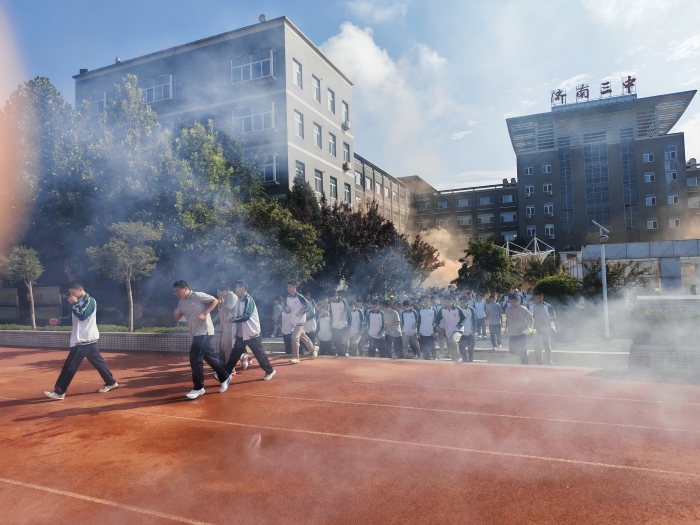 为全面巩固提升师生消防安全意识与应急自救能力,切实筑牢校园安全屏障,近日,济南三中领秀、市南两校区分别组织师生开展规范化消防应急实战演练。演练高度模拟真实火场,涵盖火情报警、应急响应、安全疏散、人员清点等关键环节,全校师生共同参与,全程衔接紧密、行动迅捷、秩序井然,取得预期成效。 演练的成功,源于前期的充分准备与周密安排。在筹备阶段,学校先通过制作消防安全知识展板、召开班级主题班会等形式,直观形象的向师生普及防火常识与逃生技能;再结合各教学楼结构特点,科学制定 “一班一策” 疏散路线图,确保师生明晰撤离路径。 学校还专门召开演练协调部署会,纪委书记李伟详细解读《消防应急疏散演练实施方案》,剖析教学楼人员密集疏散要点,并确立 “学校应急指挥中心 ——各学部——各班级” 的三级指挥网络,层层压实责任。随后,安保部主任张勇对学生干部、班主任及关键岗位人员开展预案培训,从警报识别到人数核查,实现全链条责任分工与流程对接,为演练顺利实施筑牢基础。 上午9时40分,随着演练总指挥、校长宋金波一声令下,消防应急疏散演练正式拉开帷幕。两校区指定地点迅速升起模拟火情的橙色烟雾,急促的火灾警报声随即响彻校园,应急响应机制同步激活。在模拟的紧张氛围中,各岗位工作人员迅速就位,沉着引导。全体学生则在老师的指挥下,用湿毛巾或衣物捂住口鼻,压低身体,按照预定的疏散路线,快速有序地离开教室,向楼外安全地带转移。整个过程紧张而不慌乱,迅疾而有秩序。师生撤离至开阔的操场指定区域后,各班班长立即清点本班人数,并快速将情况逐级上报。全体师生安全撤离至集结地点仅用时3分钟,充分展现了日常训练的有效性和师生应对突发事件的良好心理素质。 演练结束后,学校在操场集结区进行了现场总结。校长宋金波对演练的高效有序予以肯定,并再次强调:“安全工作是一切校园工作的基石,必须常抓不懈,警钟长鸣。本次演练不仅是一次技能检验,更是一场生命教育。学校将坚定不移地推进‘每月一主题’常态化安全实训机制,致力让应急避险能力内化为每一位师生的基本素养。” 这场沉浸式实战演练,既深刻强化了 “隐患险于明火,防范胜于救灾,责任重于泰山” 的安全意识,更有效检验了学校应急预案的科学性与可操作性,提升了各部门协同应急能力,为持续构建平安和谐稳定的校园环境筑牢了坚实保障。 (撰稿:解冬梅 摄影:张勇 部门审核:安全保卫部 编辑:颜红 张乐 审阅:张迪)
