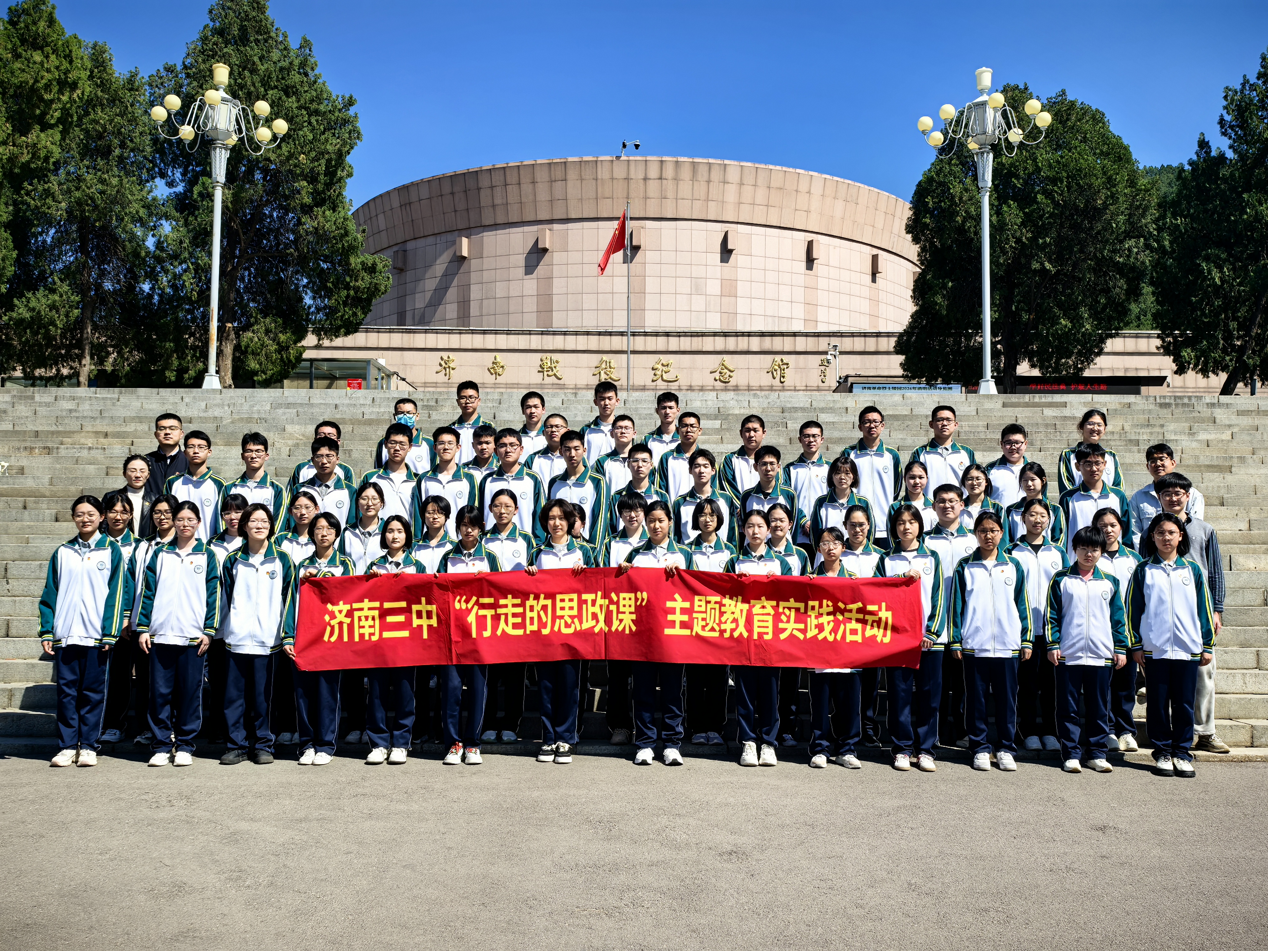 翠柏青松伴英烈,清明追思忆峥嵘。为缅怀革命先烈,传承红色基因,加强对学生的爱国主义教育,4月4日下午,山东省济南第三中学组织团员代表以及部分学生前往济南战役纪念馆,开展“铭记历史,赓续血脉”清明主题教育活动。 师生们整齐列队进入济南战役纪念馆,在讲解员的引导下,依次参观了各个主题展区。一幅幅珍贵的历史照片、一件件斑驳的烈士遗物、一份份详实的作战文献,以及逼真的战场复原场景,将惊心动魄的济南解放战役呈现在同学们眼前。共产党人的革命足迹,以及无数无名烈士为民族独立和人民解放抛头颅、洒热血的感人事迹,深深震撼着每一位同学的心灵。 “他们用生命诠释了青春的意义,用热血铸就了我们今天的幸福生活。”同学们在了解到不少烈士牺牲时年仅十几、二十岁时,眼眶湿润,更加深刻地体会到今日和平安宁的来之不易。 此次参观活动,不仅是一堂生动的历史课,更是一次深刻的精神洗礼。团委书记马楠楠在活动中表示:“先烈们的英勇事迹,是激励青少年一代健康成长、奋发向上的强大动力。组织学生走进济南战役纪念馆,就是希望他们走出课堂,在实景实物中感受历史的厚重,体悟革命精神的伟大。” 青山巍巍,英魂永存。同学们将带着这份沉甸甸的收获与感动,在未来的学习和人生道路上砥砺前行,不负韶华,让红色基因、革命薪火代代传承。 (供稿:团委 初审:石怀玉 复审:马楠楠 终审:姜明 编辑:张迪 校对:张迪 核发:姜明) |