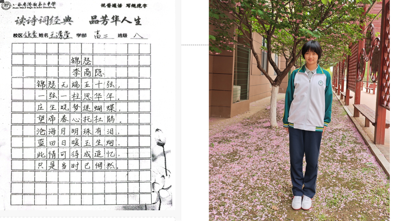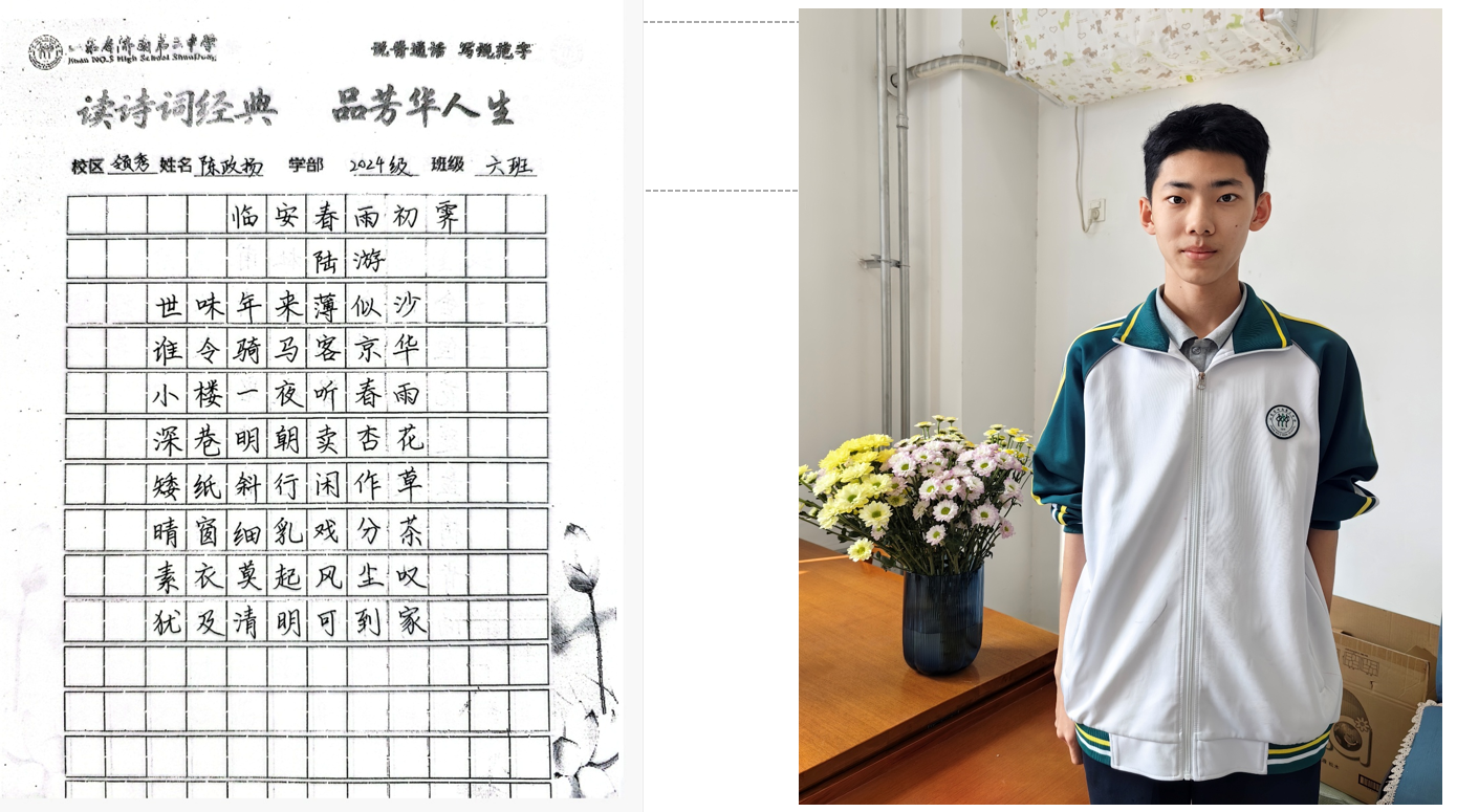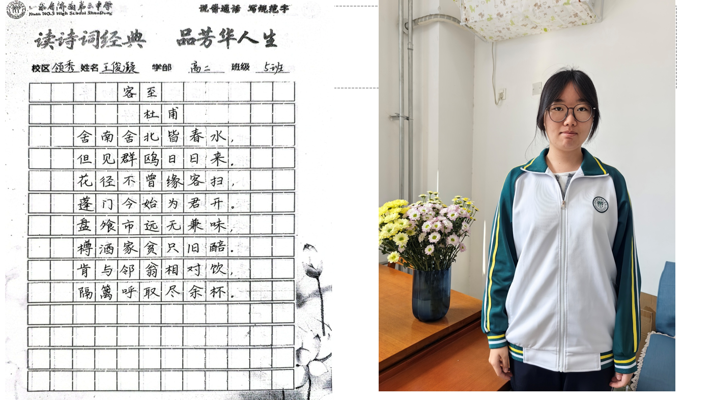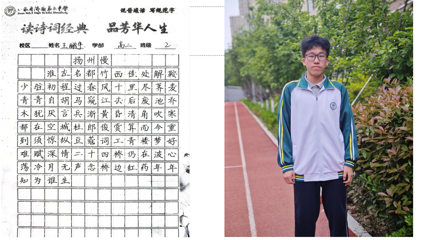 “笔走龙蛇书壮志,诗吟千古品芳华。”近日,高二学部“书诗词经典,品芳华人生”主题活动圆满落幕。作为领秀校区多彩学科节系列活动之一,本次活动以“书写经典、感悟人生”为内核,通过诗词书写、情景演绎、分享交流等多元形式,带领同学们在笔墨与诗韵中触摸传统文化脉络,体悟经典诗词中蕴藏的人生智慧。 活动自筹备以来,便得到高二学子的热烈响应。在前期举办的“班级诗词书写大赛”中,同学们以笔为媒,将对诗词的理解融入书法创作:或用楷书工整抄录《兰亭集序》,一笔一划间仿佛映出王羲之的飘逸;或以行书挥洒《将进酒》,墨色浓淡中尽显李白的豪迈与不羁;还有同学以隶书写下《诗经·蒹葭》,古朴的笔画里流淌着“溯洄从之”的怅惘与追寻。一幅幅作品悬挂于教学楼走廊,串联成一条“诗词长廊”,成为校园里一道别具韵致的文化风景线。 本次活动旨在以诗词为纽带,让学生在“读、写、悟、演”中提升语文素养,传承文化基因,为书香校园建设再添一抹亮色。笔墨留痕,诗心永驻,活动不仅让同学们领略了中华诗词的无穷魅力,更让经典与青春碰撞出别样的火花,为高中生活涂上一抹温润而厚重的文化底色。 (撰稿:苏梅 摄影:褚冬婷 部门审核:领秀高二学部 编辑:颜红 张乐 审阅: 张迪) |