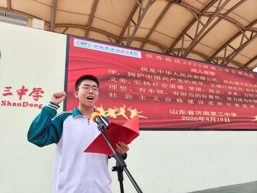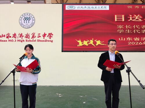 春风浩荡,青春正好。4月19日下午,山东省济南第三中学两校区操场上洋溢着温情与热血,2023级高三成人仪式隆重举行。本次活动以“十八而志·大任以行·弘毅致远·挺膺担当”为主题,高三全体学子与校领导、老师、父母共赴一场成长的盛典,见证十八岁的庄严跨越。 两校区仪式分别由副校长滕岩、副校长陆梅主持,校长宋金波、党委书记姜明为即将迈入成人行列的同学们送上最真挚的祝福与殷切的期许,寄语学子“以十八岁为新的起跑线,立大志、明大德、成大才、担大任,用奋斗书写青春的答卷,奔赴远方的山海。” 现场大屏上,师长们的祝福视频缓缓流淌,熟悉的脸庞、温暖的话语,穿越屏幕抵达人心。教师代表杜晓黎老师登台致辞,祝愿学子们保持“明诚修业”的底色,怀揣“感恩与悲悯”的温度,执笔为剑,高考梦圆! 家长代表刘莹女士动情回望十八载养育时光,叮嘱孩子们铭记师恩、珍惜友情、以成年人的姿态面对人生考验。罗雅茹等同学带来深情的朗诵《挺膺担当 十八逐光》,感恩母校搭建成长舞台,珍惜父母默默陪伴,也致敬坚持不懈的自己。郑义先生与郑尤扬同学温馨的父女对话,道尽了亲子间的牵挂与期许,深深打动了台下每一位家长与同学,让现场暖意更浓、温情更盛。 “以梦为马,展翅高飞!全力以赴,一举夺魁!”同学们的呐喊铿锵有力、响彻校园,手中的五彩气球同步放飞,载着青春的梦想与对未来的期盼,缓缓飞向蓝天,掌声与欢呼声交织成最动人的青春乐章。 在学生代表的领誓下,全体高三学子举起右拳,许下成人的誓言,忠于祖国、恪守法律、勇担使命的青春承诺,展现出三中学子坚定的理想信念和勇毅前行的决心。随后,他们昂首挺胸、步履坚定,迈步走向象征成长蜕变的成人门,校领导、老师与家长们早已在门的另一端静静等候,为他们送上成人卡片与芬芳鲜花,一句句温暖的祝福,一个个鼓励的眼神,为这场成长仪式,添上了最动人、最温暖的底色。 十八而志,大任始承;青春有为,逐梦远航。愿全体高三学子带着母校的嘱托、师长的教诲、父母的期盼,以青春为翼,以奋斗为笔,呼应时代山海的召唤,肩承祖国未来的使命,乘风破浪,向远而行。 (供稿:团委 高三学部 初审:杨亚姣 复审:李明 杨金石 终审:姜明 编辑:颜红 张乐 校对: 张迪 核发:姜明) |