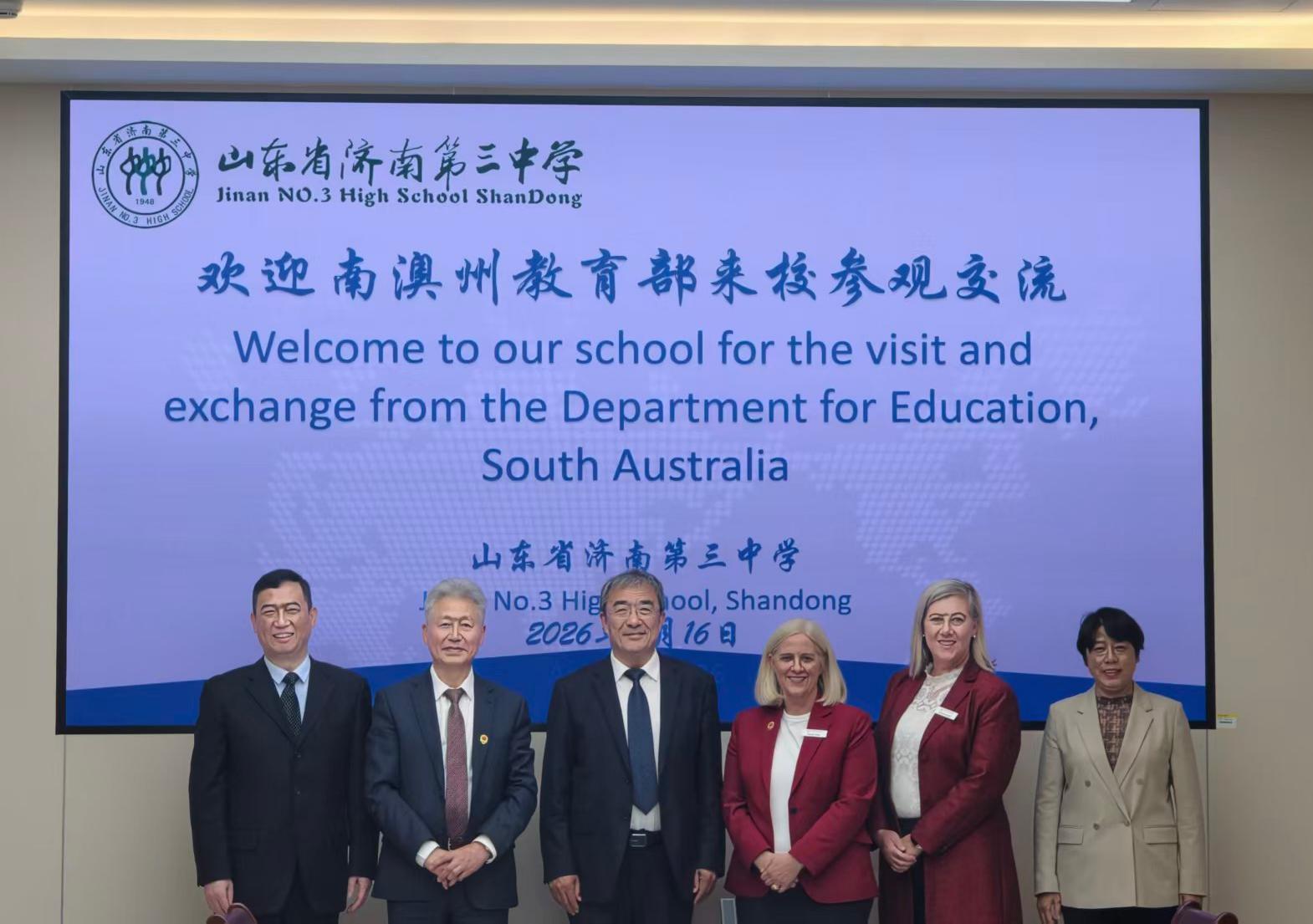 时值山东省与澳大利亚南澳州缔结友好省州关系40 周年之际,为深化中澳教育务实合作,推动教育理念交融互鉴,2026 年 4 月 16 日下午,澳大利亚南澳州教育部访问团一行莅临山东省济南第三中学考察交流。济南市教育局国际处处长张勇,济南三中党委书记姜明及学校相关领导热情接待来访嘉宾,双方在深厚的省州友谊基础上,共话教育发展、共商合作愿景,续写中外教育交流新篇章。 下午 3 时,交流座谈会在品正楼如期举行。姜明书记对访问团的到来表示热烈欢迎,并全面介绍了学校办学情况、育人理念与特色发展成果,重点分享了学校在心理健康教育、STEAM 科创教育、校本课程开发和学生综合素质培养等方面的实践经验。作为一所特色鲜明的高中学校,济南三中现代化的办学条件与精细化育人管理得到访问团高度认可。 南澳州教育部国际教育服务处处长纳雷尔女士表示,济南三中的育人理念与南澳州有许多契合之处,期待以此次访问为契机,进一步深化交流合作,在课程共建、师生交流等领域拓展更多合作项目。济南市教育局国际处处长张勇在讲话中指出,济南市始终坚持“开放办学、融合发展”的理念,希望两地在未来能够不断深化交流内容、创新交流形式,共同树立起以教育交流带动人文交流的教育对外开放新标杆。 下午 4 时,访问团一行实地参观了三中校园,在心理健康教育中心、STEAM 教育中心等场馆认真听取介绍,详细了解设施功能及课程开设。来到体育艺术馆,访问团观看了济南三中“春天送你一首诗”课本剧展演及国乐、舞蹈特色展示,中澳师生亲切交流、友好互动,在轻松愉悦的氛围中增进理解、加深友谊。 济南三中始终紧跟省市教育国际化步伐,此前已与南澳州普林顿国际学校正式缔结友好合作学校关系,并在互访交流中加深了彼此友谊,为此次交流奠定了坚实基础。今年下半年,学校还计划与普林顿国际学校再次进行友好互访,不断丰富办学内涵,努力培养兼具家国情怀与国际视野的新时代青年,为中外教育交流合作贡献力量。 (供稿:新闻中心 初审:张迪 复审:任广利 终审:姜明 编辑:张迪 校对:颜红 张乐 核发:姜明) |