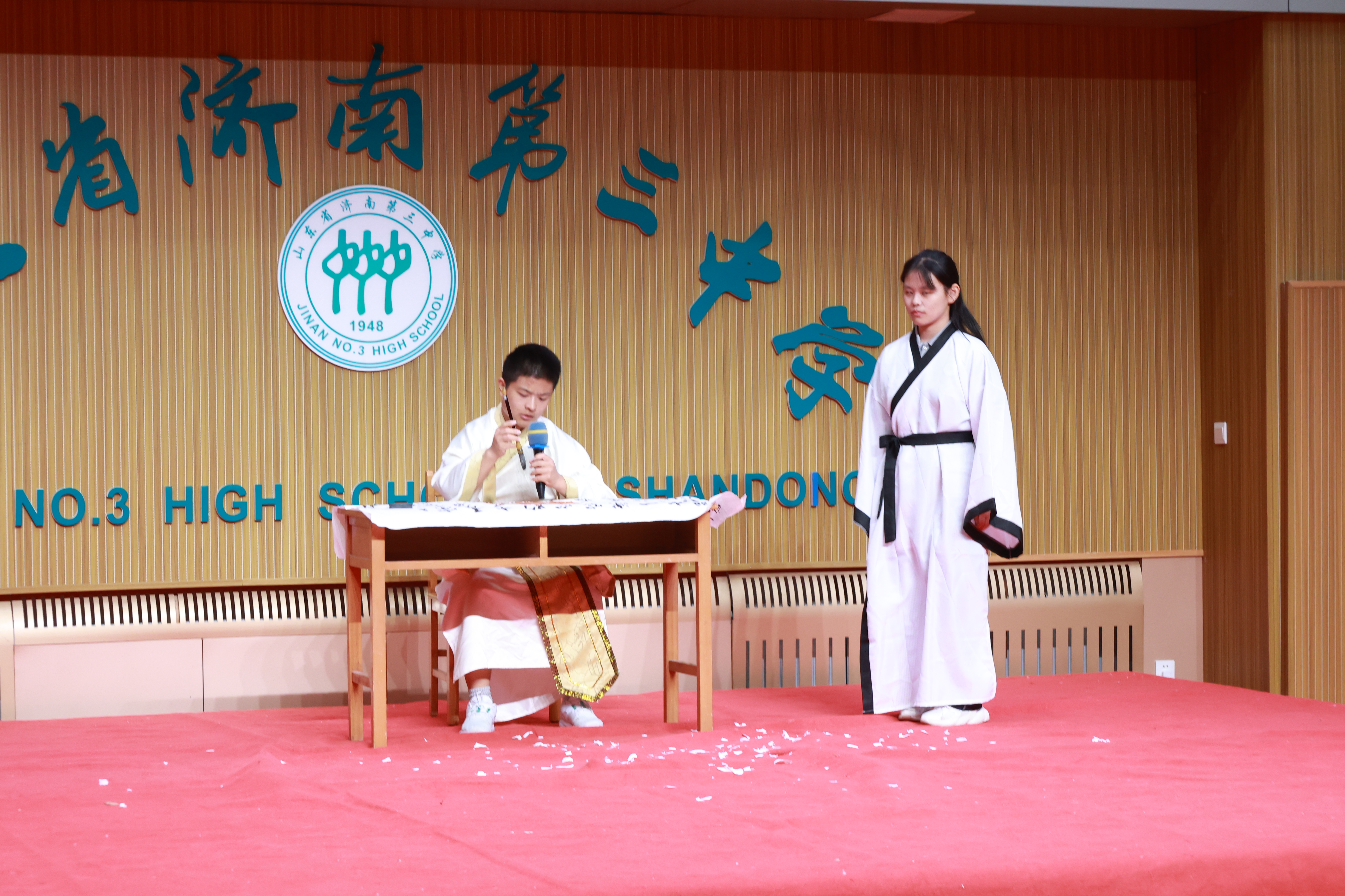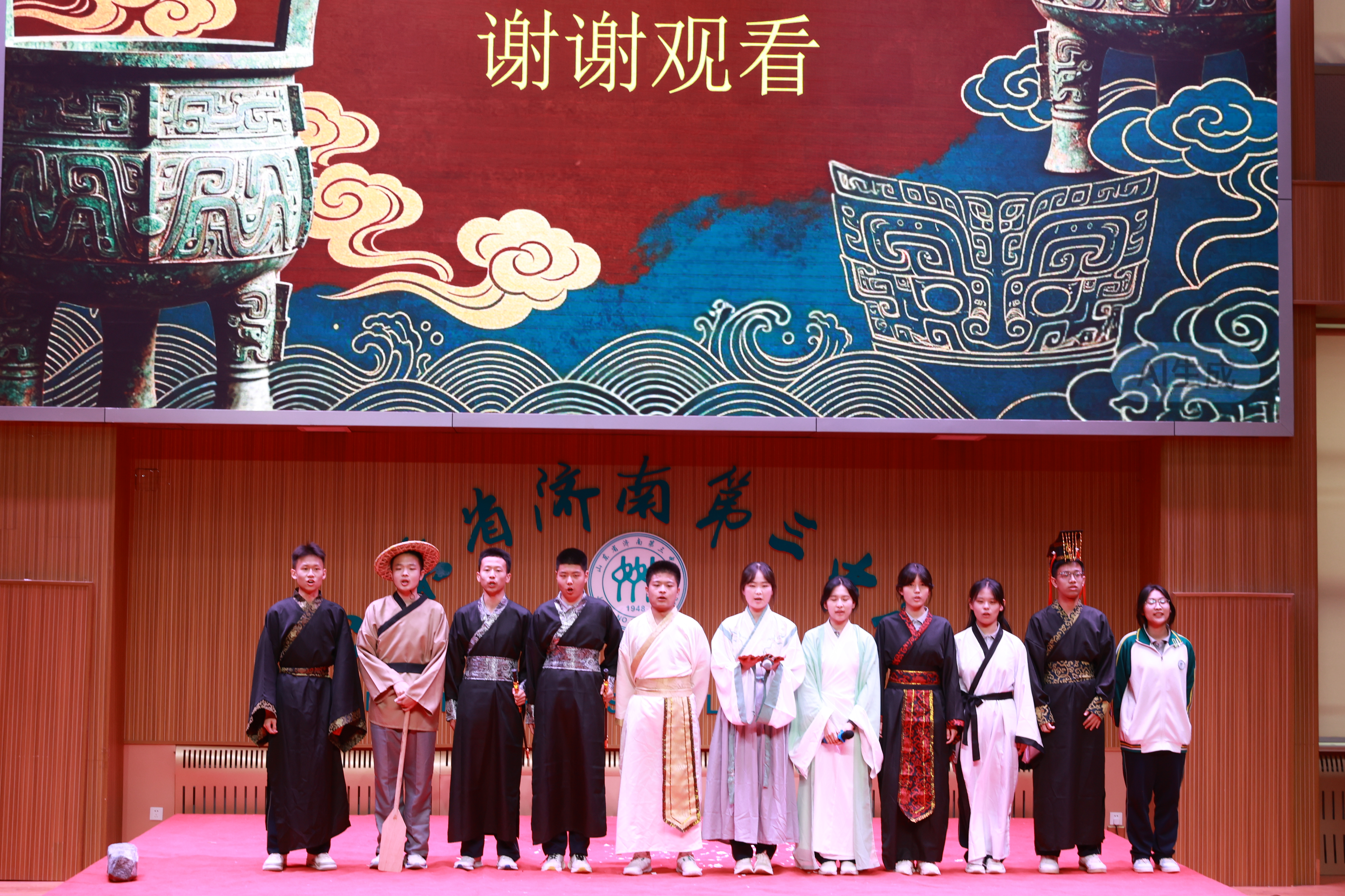 古韵传薪火,朗朗诵华章。4月16日,济南三中“春天送你一首诗”课本剧展演活动如期而至。高二4班的演员们心往一处想、劲儿往一处使,用一场古韵新生的视听盛宴,惊艳了全场。 从赛前的构思框架、打磨文稿,到班里的反复排练、雕琢细节,每个人都铆足了劲,倾注了满腔热忱。班主任韩道珍更是全程陪伴、悉心点拨,为班级注入了满满的信心与力量。 登台那一刻,演员们精神抖擞,目光灼灼。灯光骤然聚焦于舞台中央,“屈原”衣袂临风,眉宇间尽是忧国忧民的赤诚与不屈。他开口吟诵,声音沉郁顿挫,如大江潜流、暗蓄千钧之力;随即愈渐高亢,字字铿锵,如金石相击,将满腔悲愤与壮志难酬一泻而出,慷慨激昂,震彻全场。 台下,观众屏息凝神,无不动容。台上的其他演员也全然沉浸其中,或颔首低眉,神情悲戚;或肃然而立,泪光闪烁。情绪随着台词层层递进,与屈原的吟诵此呼彼应,浑然一体。 当最后一句余音落下,全场静默片刻,随即爆发出经久不息的掌声。观众们被这份赤诚与悲壮深深打动,掌声此起彼伏,热烈而真挚,为这段荡气回肠的演绎,也为千百年前那位孤高坚贞的爱国诗人。 经过激烈角逐,高二四班凭借出色的整体表现和精湛的演技,一举摘得一等奖。这份荣誉,是全体演职人员汗水与智慧的结晶,更是班级凝聚力的生动写照。 荣誉属于过去,奋斗成就未来。高二四班将以此为荣,珍藏这份春日的喜悦,继续怀揣热爱,团结奋进,在青春的赛道上奋勇争先,不断书写新的精彩华章。 (撰稿:韩道珍 摄影:韩道珍 编辑:颜红 张乐 审阅:张迪) |