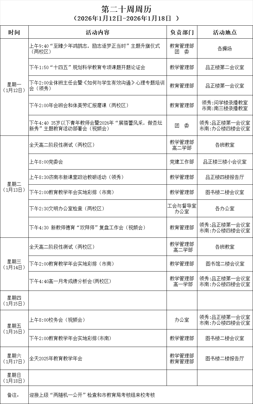 周历安排
