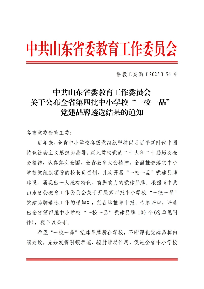 近日,中共山东省委教育工作委员会公布全省第四批中小学校“一校一品”党建品牌遴选结果,山东省济南第三中学“思政领航‘品’先行”党建品牌成功入选,标志着学校党建工作与教育教学深度融合的实践成果获得省级权威认可。 高中阶段恰是青年世界观、人生观、价值观“拔节孕穗”的关键期。2020 年,济南三中党委在市委教育工委指导下,锚定“为党育人、为国育才”根本任务,以“思政领航“品”先行”为题,启动“一校一品”党建特色项目,确立了“让理想信念可感、可触、可生成,让青春拔节孕穗有声、有色、有力量!”的建设目标。 历经五年打磨,学校以“课程大思政·三味课堂”为核心,实现全学科、全时空、全人员协同,让教育从45分钟教室小课堂走向社会大课堂、网络云课堂、人生终身课堂,形成了多维融合的思政育人新生态。 “追随信仰 卓越人生”等项目获评市级德育品牌和爱国主义教育优秀案例,学生主创的公益团课在央视网展播,教师队伍中走出山东省优秀共产党员、济南市“立德树人双领军教师”等骨干力量,多项教学成果获市级特等奖、一等奖。品牌影响力持续辐射,不仅为省内7所学校提供联合培训,更通过全国36校团课联培等形式覆盖学生3万余人次,相关活动被人民日报客户端、新华网、中国教育报等多家媒体报道,形成广泛社会影响。 未来,济南三中将继续以习近平新时代中国特色社会主义思想为指引,深化“课程大思政·三味课堂”建设,让每一门课程都浸润信仰的味道,让每一位学子都在思政滋养中坚定理想、锤炼品格,贡献更具示范力、引领力、辐射力的“三中方案、济南样板、山东经验”! (供稿:领秀党建工作部 初审:彭保华 复审:彭保华 终审:姜明 编辑:张迪 张乐 核发:张迪)